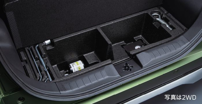 ラゲッジルーム下の空間を収納スペースとして有効活用。工具類や洗車グッズなどを整理して積んでおけます。