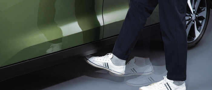 荷物などで両手がふさがっていても、キーレスオペレーションキーを携帯している状態で、運転席側スライドドアの下に足先をスッと入れてサッと引くだけで、ドアが自動で開閉します。