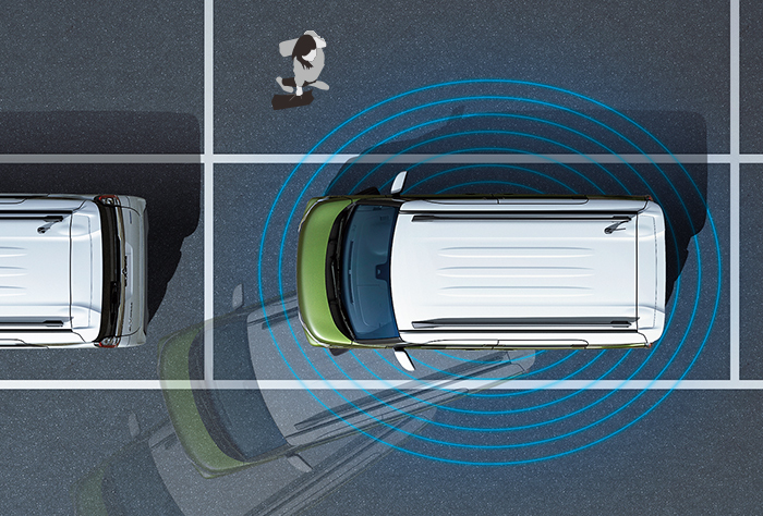 - ● 移動物検知機能は、自車周辺の移動物をドライバーにお知らせすることで、安全確認をサポートする機能です。すべての移動物を検知できるわけではありません。また、静止しているものは検知できません。車両の操作をするときは、周囲の安全をミラーや目視で直接確認してください。