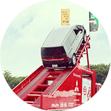 さまざまな角度の傾斜や激しいアップダウン、凸凹路面を備えた本格的なクロスカントリーコース。「デリカD:5」のCM撮影でも使用された同コースでは、悪路を駆け抜ける“走破力”が持ち味の、「デリカD:5」に試乗いただき、その性能を存分に体感してもらいました。