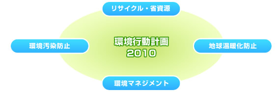 これらの環境への取り組みは、『環境行動計画2010』として公表し、中期及び年度目標を定め、目標達成に向けて全社をあげて取り組んでいます。