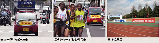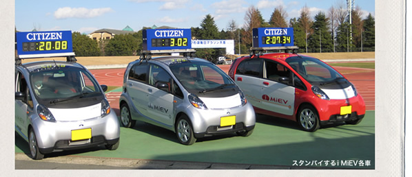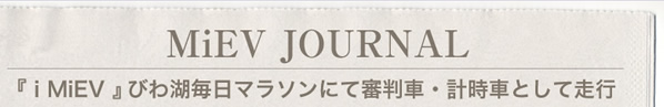2008年3月2日(日)に開催された第63回 びわ湖毎日マラソン大会(主催:財団法人日本陸上競技連盟、毎日新聞社、滋賀県、滋賀県教育委員会、大津市、大津市教育委員会)に協賛し、運営協力車両として、新世代電気自動車『i MiEV(アイ ミーブ)』4台が、選手たちの戦いをサポートしました。