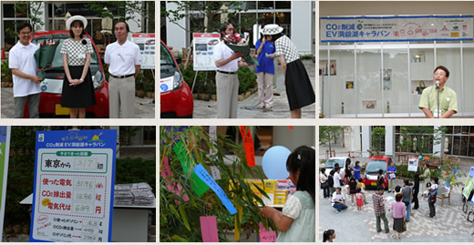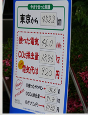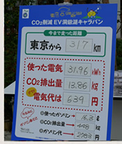 舘内代表が、ひとつひとつの問題に解説を加え、みなさん勉強になっているようでした。様々なグッズのプレゼントやお客様が日頃エコに関して、気をつけていることを披露したり、こどもたちも、初めて見る電気自動車の説明を熱心に聞いていました。 |