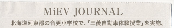 2008年7月14日、北海道河東郡音更町の町立音更小学校で「三菱自動車体験授業」が行われました。 今回の三菱自動車体験授業では、北海道洞爺湖サミット(主要先進国首脳会議)の運営車両として使用した「i MiEV」を用いて、環境体験授業を実施。5年生87名が授業を受けました。