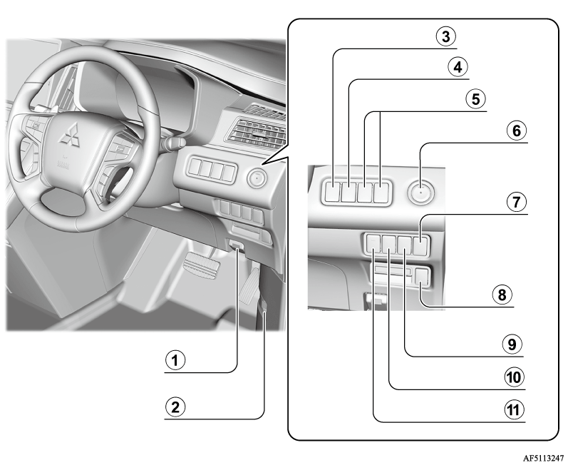 | ⑪ | ステアリングヒータースイッチ ステアリングヒータースイッチ |