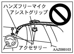 SRSエアバッグが正常に膨らむのを妨げたり、膨らむときにこれらの物が飛んで重大な傷害を受けるおそれがあります。