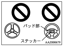 ハンドルの交換や、パッド部にステッカーを貼ったり、カバーを付けることはしないでください。SRSエアバッグが正常に作動しなかったり、誤って作動し、重大な傷害を受けるおそれがあります。