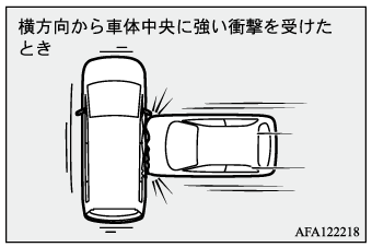 乗員に重大な危害がおよぶような強い衝撃を車両前方から受けたときに作動します。