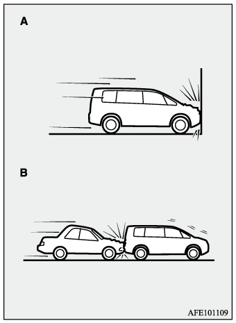 - コンクリートのような固い壁でなく、衝撃を吸収できる物(車やガードレールのように変形、移動する物)に衝突した場合は、SRSエアバッグが作動するときの衝突速度(車速)は高くなります。