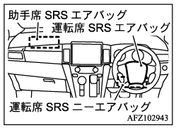- 次の修理または部品の取り付けをするときは、SRSエアバッグに影響をおよぼしたり、SRSエアバッグが思いがけなく作動しけがをするおそれがありますので、三菱自動車販売会社にご相談ください。