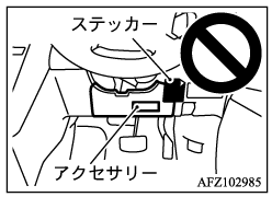 また、インストルメントパネルの上にステッカーを貼ったりしないでください。SRSエアバッグが正常に膨らむのを妨げるおそれがあります。