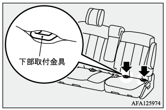 下部取付金具はセカンドシートクッションと背もたれの間に、上部取付金具はセカンドシートのシートクッション後方に、それぞれ装備されています。