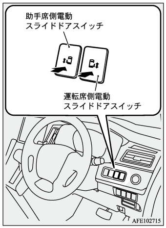 - 連続してセーフティ機構が働いた場合は、電動スライドドアがその場で停止して手動操作に切り換わることがあります。このとき、電動スライドドアの位置によっては急に開閉することがありますので注意してください。