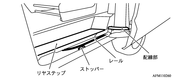 - スライドドアを閉めるときは、リヤステップ下のレール付近およびストッパー付近に異物がないことを確認してください。