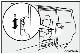 レバーを施錠側(1)にしてスライドドアを閉めると、スライドドアのロックノブの位置に関係なく、車内からはスライドドアが開けられなくなります。
