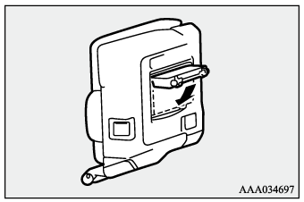 - 折りたたんだシートは必ず固定バンドで確実に固定してください。固定されていないとシートが倒れ、重大な事故につながるおそれがあります。