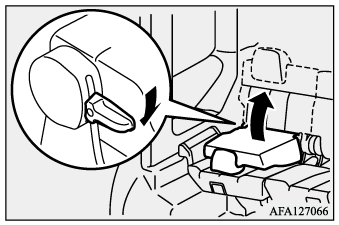 シートが固定されていることを確認してからレバーを引いたまま、シートクッションを跳ね上げます。