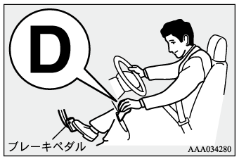 以外の位置(前進または後退の位置)に入れるとクリープ現象により、ブレーキペダルから足を離すとアクセルペダルを踏まなくても車が動き出します。