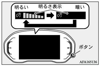 周囲が明るい状況でライト(車幅灯含む)点灯時に照明が暗くなり見づらくなった場合に使用することをおすすめします。 - 炎天下ではマルチインフォメーションディスプレイが暗くなることがありますが、故障ではありません。