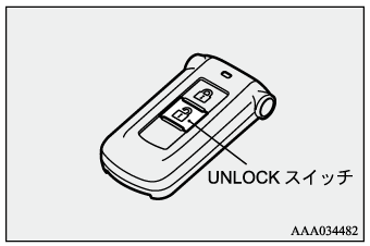 ライトスイッチがAUTOの位置のとき、キーレスオペレーションキーのUNLOCKスイッチを押すと、車幅灯が約30秒間点灯します。車外が暗いときのみ点灯します。