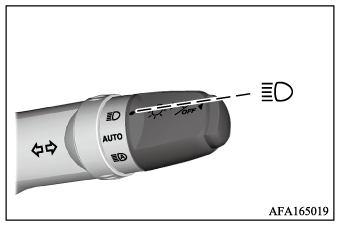 - AUTOの位置でフロントフォグランプが点灯しているとき、エンジンスイッチの電源モードをOFFにすると、フロントフォグランプも自動消灯します。