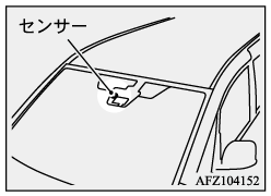 フロントガラスの交換・センサー付近のガラス補修をするときは、三菱自動車販売会社にご相談ください。フロントガラスにステッカーやラベルを貼ってセンサーを覆わないでください。