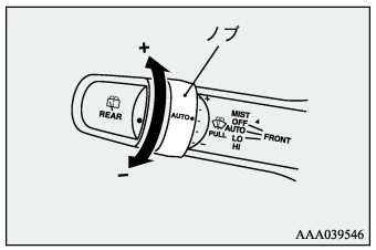 エンジンスイッチの電源モードがONのとき、レバーをAUTO位置にしてノブを+側に回す