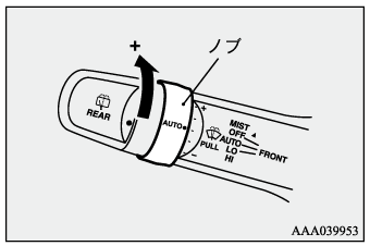 詳しくは三菱自動車販売会社にご相談ください。 - ワイパーを作動させずウォッシャー液を噴射するときは、レバー先端のツマミを