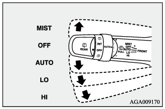 レバーをMIST位置に上げている間は、ワイパーが連続作動します。