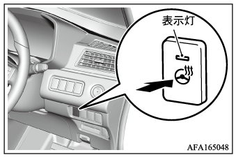 エンジンスイッチの電源モードがONのときに、スイッチを押すとステアリングヒーターが作動し、スイッチ内の表示灯が点灯します。
