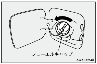 - 急激にフューエルキャップを回さないでください。急激に回すと、燃料タンク内の圧力により、補給口から燃料が吹き返すおそれがあります。