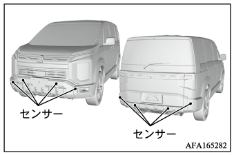 - センサーおよびセンサーの周辺をぶつけたときは、センサーが正しく機能しなくなりますので、三菱自動車販売会社で点検を受けてください。