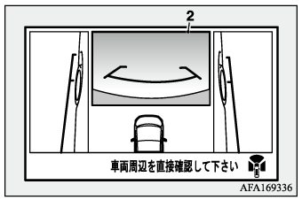 黄色枠(2)は、フロントビュー、リヤビュー、フロントワイドビューとリヤワイドビューの画面に表示します。