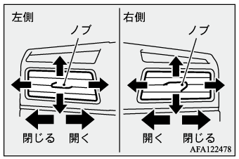 吹き出し口を閉じるときは、ノブを外側いっぱいまで動かします。
