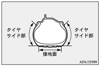 タイヤサイド部(接地面以外の部分)が損傷を受け、パンクしたとき