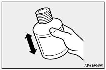 - 寒冷時(0°C以下)では、応急修理剤の粘度が高くなり注入しづらくなることがありますので、ボトルを振る前に車内などで温めてください。