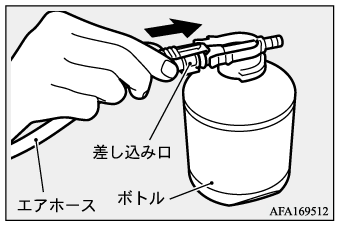 エアホースの差し込み口を、応急修理剤のボトルにしっかりと接続します。
