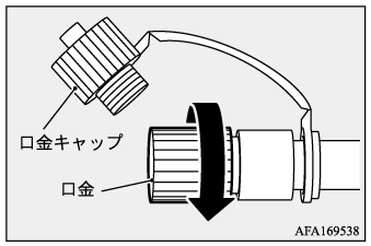 エアホースにある口金キャップを持って、口金を回して口金キャップを取り外します。