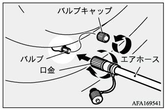 なお、応急修理後の恒久修理のとき、パンク穴を発見できず恒久修理できないことがあります。 - 応急修理材使用後は、バルブを新品へ交換してください。