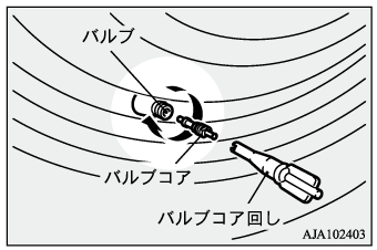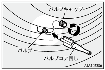 - バルブコアを外すとき、タイヤに空気が残っているとバルブコアが飛び出し、けがをするおそれがありますので、完全に空気が抜けていることを確認してから外してください。