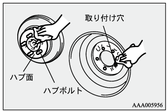 ハブ面、ハブボルトおよびホイール取り付け穴の汚れをきれいに取り除きます。