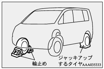 - ジャッキアップするときは、必ず輪止めを使用してください。