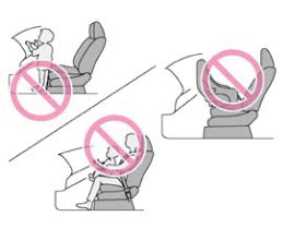 SRSエアバッグ格納部に手や足を置いたり、顔や胸などを不必要に近づけたりしないでください。また、お子さまをSRSエアバッグ格納部の前に立たせたり、ひざの上に抱いたりせず、後席シートに乗せてください。 - チャイルドシートは後席シートに取り付ける。