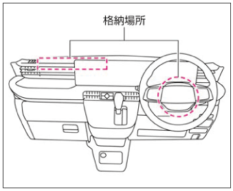 SRSエアバッグ格納部およびその周辺にステッカーなどを貼ったり、アクセサリーや芳香剤などを置いたりしない。