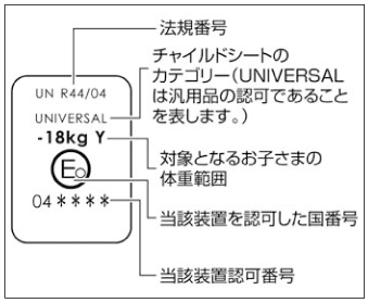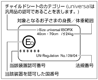- UN R44またはR129はチャイルドシートに関する国際法です。UN R44またはR129の基準に適合した汎用(ユニバーサル)チャイルドシートには、認可マークが貼られています。