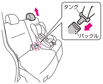 - i-SizeおよびISOFIXチャイルドシートを取り付けるときは、後席シートのヘッドレストを取り外す。(ヘッドレストとチャイルドシートが干渉してチャイルドシートを正しく取り付けられない場合)