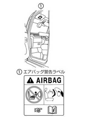 SRSエアバッグが作動したときに強い衝撃を受け、死亡または重大な傷害につながるおそれがあります。やむをえず助手席に取り付けるときは、シートをできるだけ後ろに下げ、必ず前向きに取り付けてください。