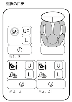 チャイルドシートの取り付け位置により、使用できるチャイルドシートが異なります。