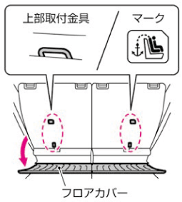 上部取付金具は、後席シート左右背もたれ裏側にあります。