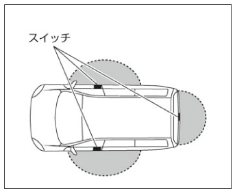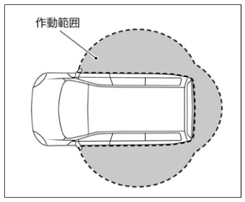 作動範囲は各ドアにあるスイッチから周囲約80cm以内です。作動範囲は球状になっているため、地面近くや高い場所では作動しないことがあります。